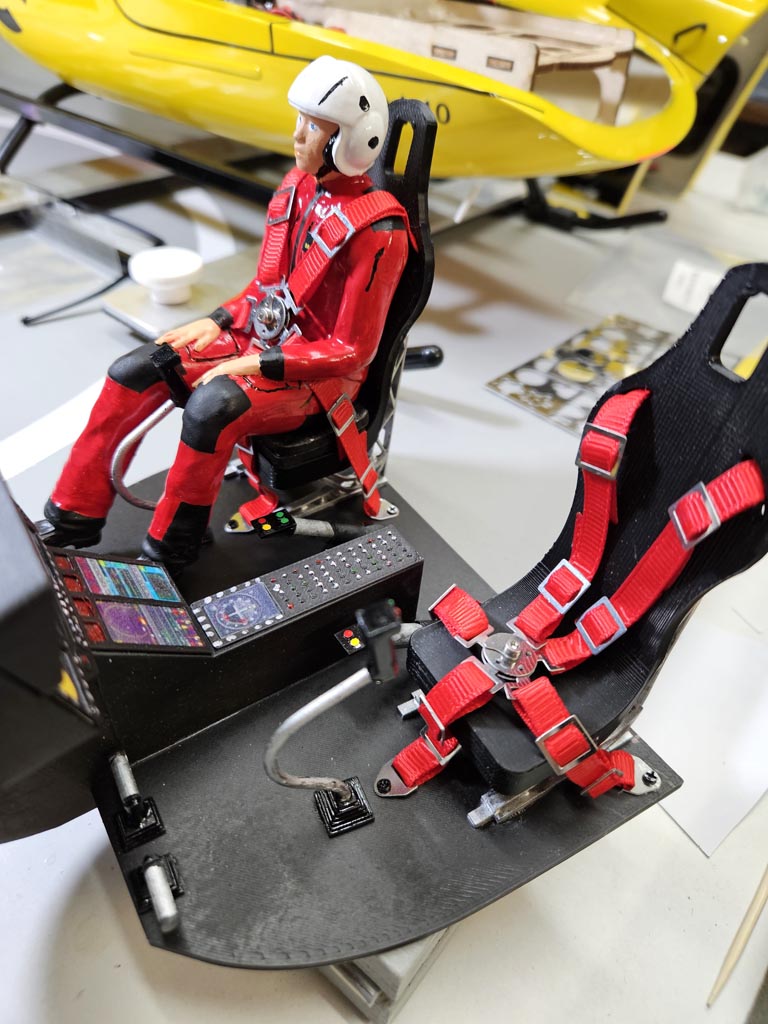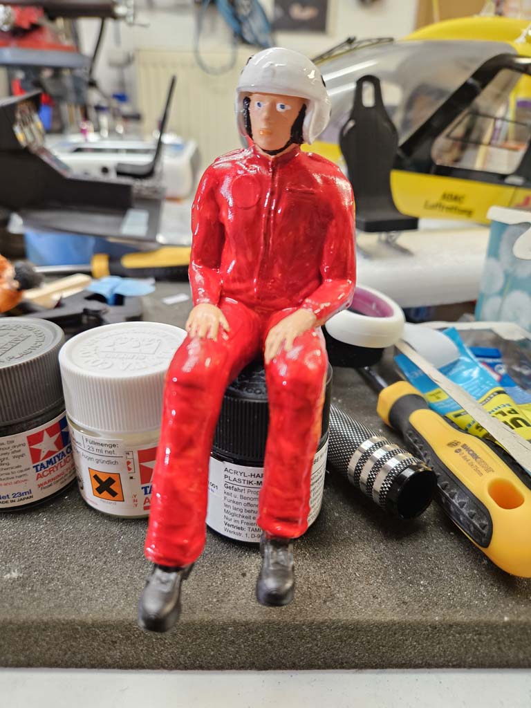 Als nächstes habe ich den Piloten angemalt Cockpit gebaut und die Scheiben verdunkelt. Danach kamen noch weiter Decal an den Heli sowie auch Sitzgurte.