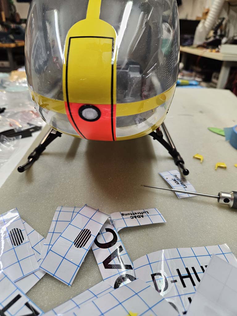 Nun wurden die ganzen Blechstöße gezogen und der Triebwerkseinlass und auslass erstellt, anschließend kamen die ersten Dacals auf den Heli und die ersten Klappenverschlüsse.