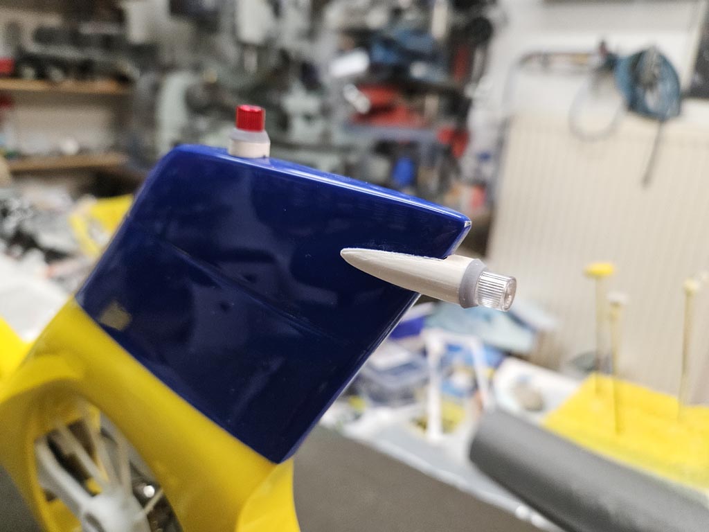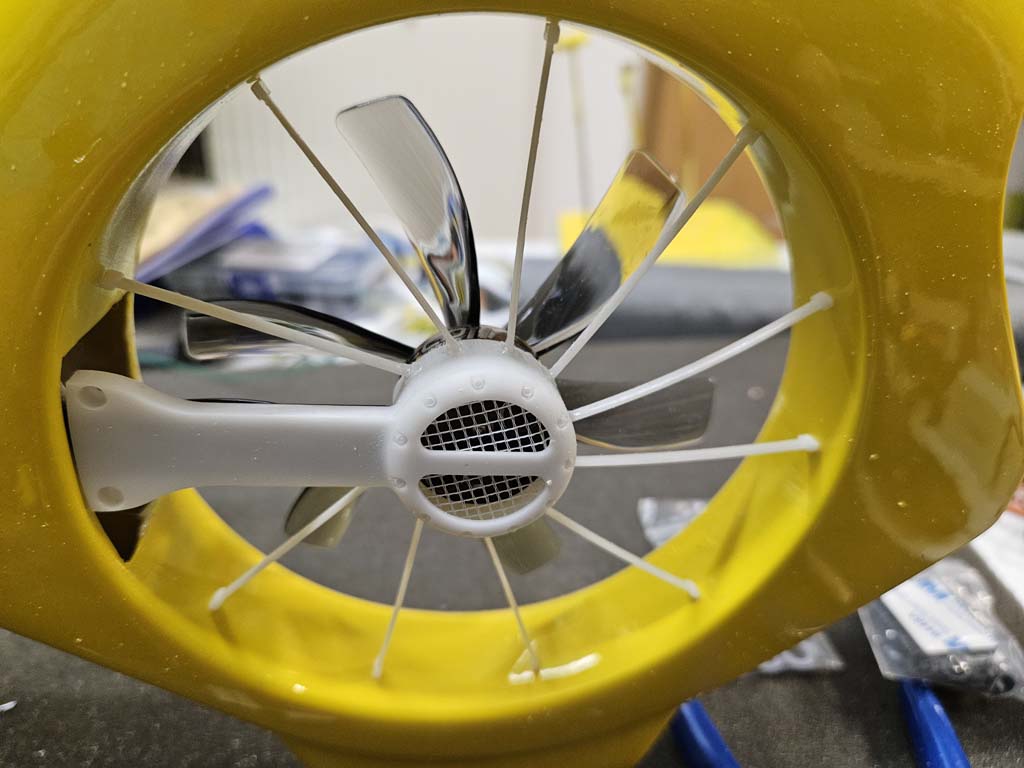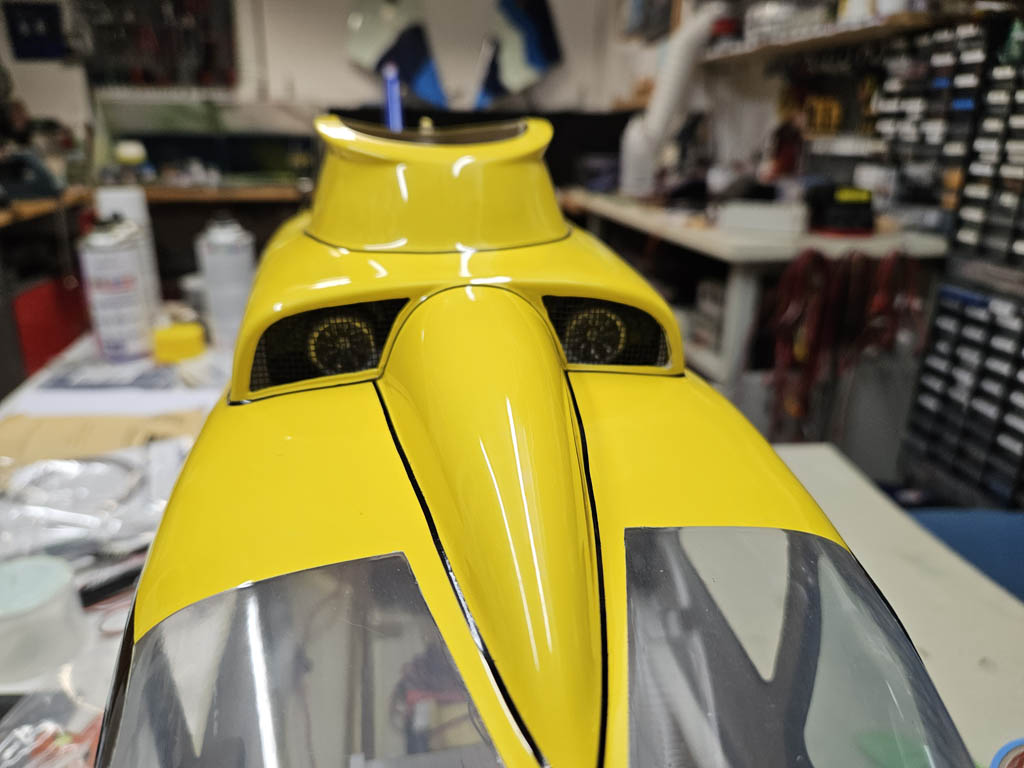 Nun wurde die Verkleidung des Heckrotor lackiert udn danach verschraubt und verklebt.Weiter ging es mit der Seitenbeleuchtung sowie den Frontscheinwerfer.